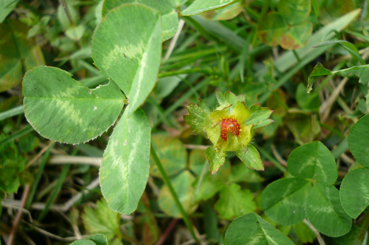 へびいちごは少し離れた所にいっぱいあったのですが、この子は何故かクローバーの中に一つだけあったので、パシャリ。